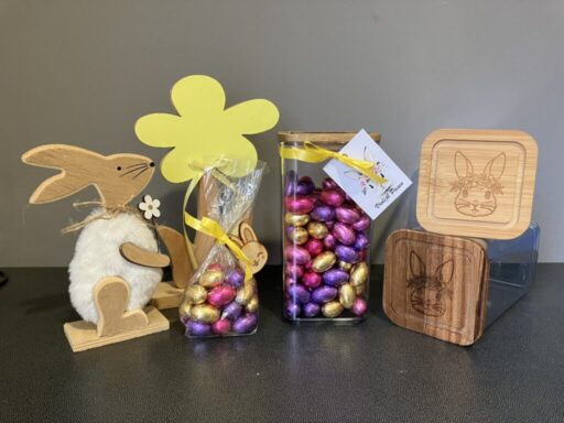 Wij bieden een assortiment paaseitjes met hazelnootvulling in twee verpakkingen aan: een zakje (150 gr) met mooie houten decoratie of een bokaal (750 gr) met bamboo deksel gegraveerd in paasthema. Voor een kleine meerprijs leveren wij uw bestelling ook aan huis.