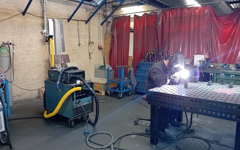 Na de investering van de lashelmen met het Adflo ademhalingssysteem vorig jaar, werd nu een lasrookafzuiging geïnstalleerd op onze metaalafdeling . Alle laspunten in het atelier zijn nu voorzien van een geavanceerde afzuiging. Met de juiste luchtstroom doorheen de dampafzuiger worden de gevaarlijke dampen uit de lasser zijn of haar ademzone weg gezogen. Dit zonder de beschermgassen nodig voor het lassen en de laskwaliteit te beïnvloeden.